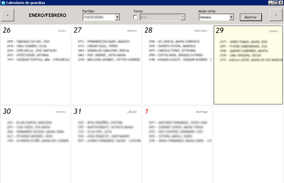 Confección de los calendarios de guardia